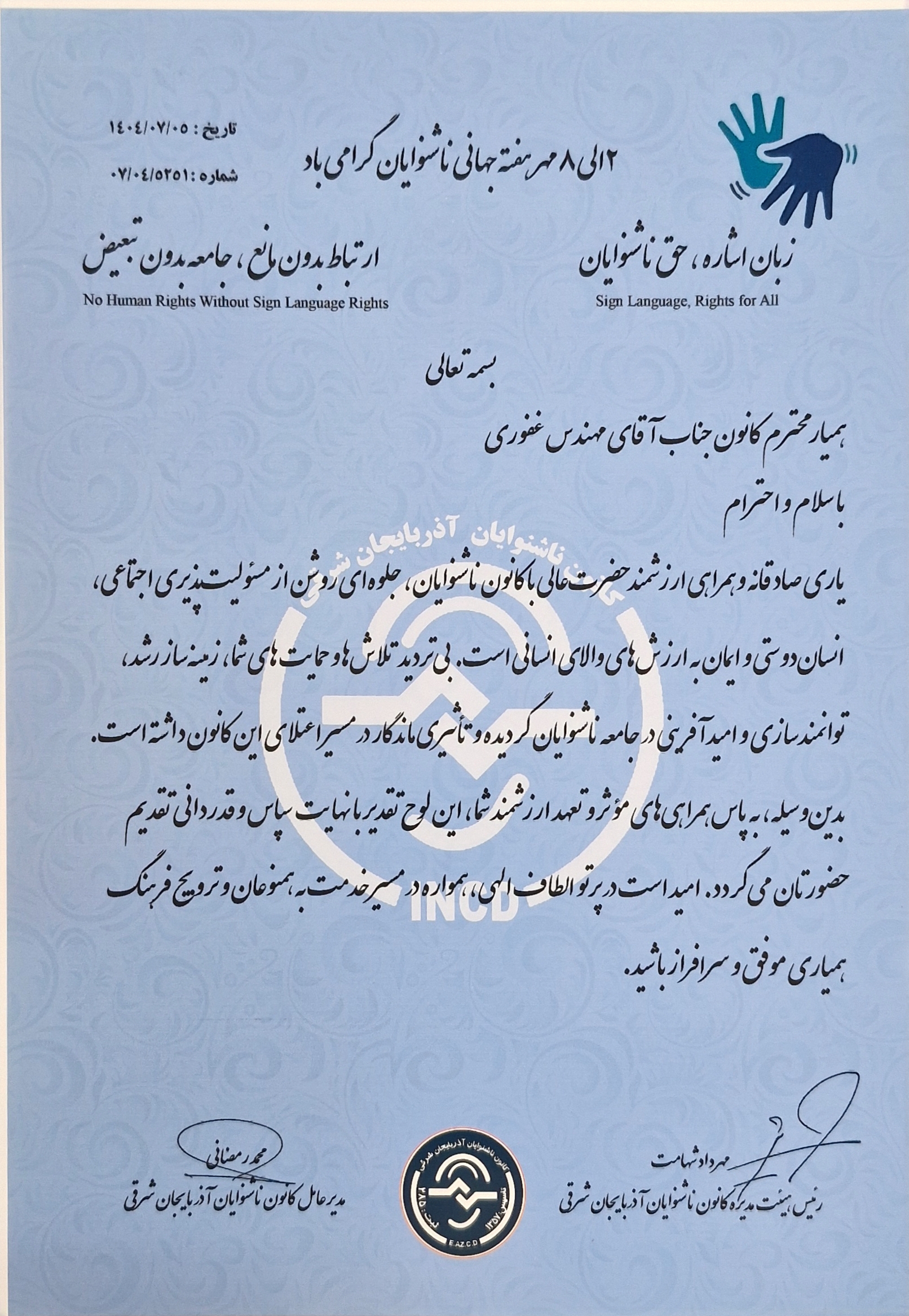 تبریز – چهار راه آبرسان - جنب اداره کل فرهنگ و ارشاد اسلامی و بانک مسکن شعبه آزادی - تلفن : 04133350269 - 04133366260